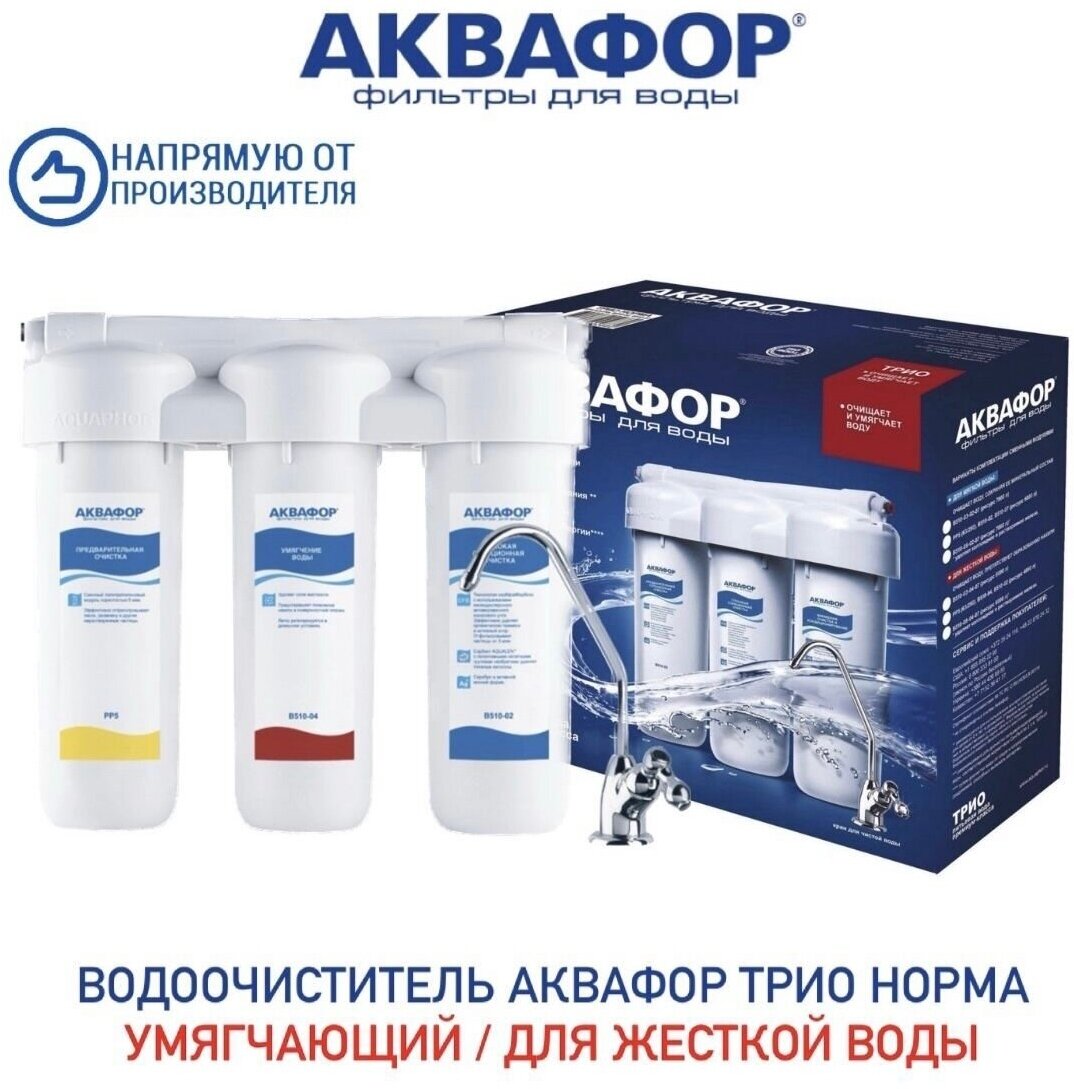 Водоочиститель Аквафор Трио Норма Умягчающий с краном/Фильтр Аквафор Трио Норма/Фильтр под мойку Аквафор
