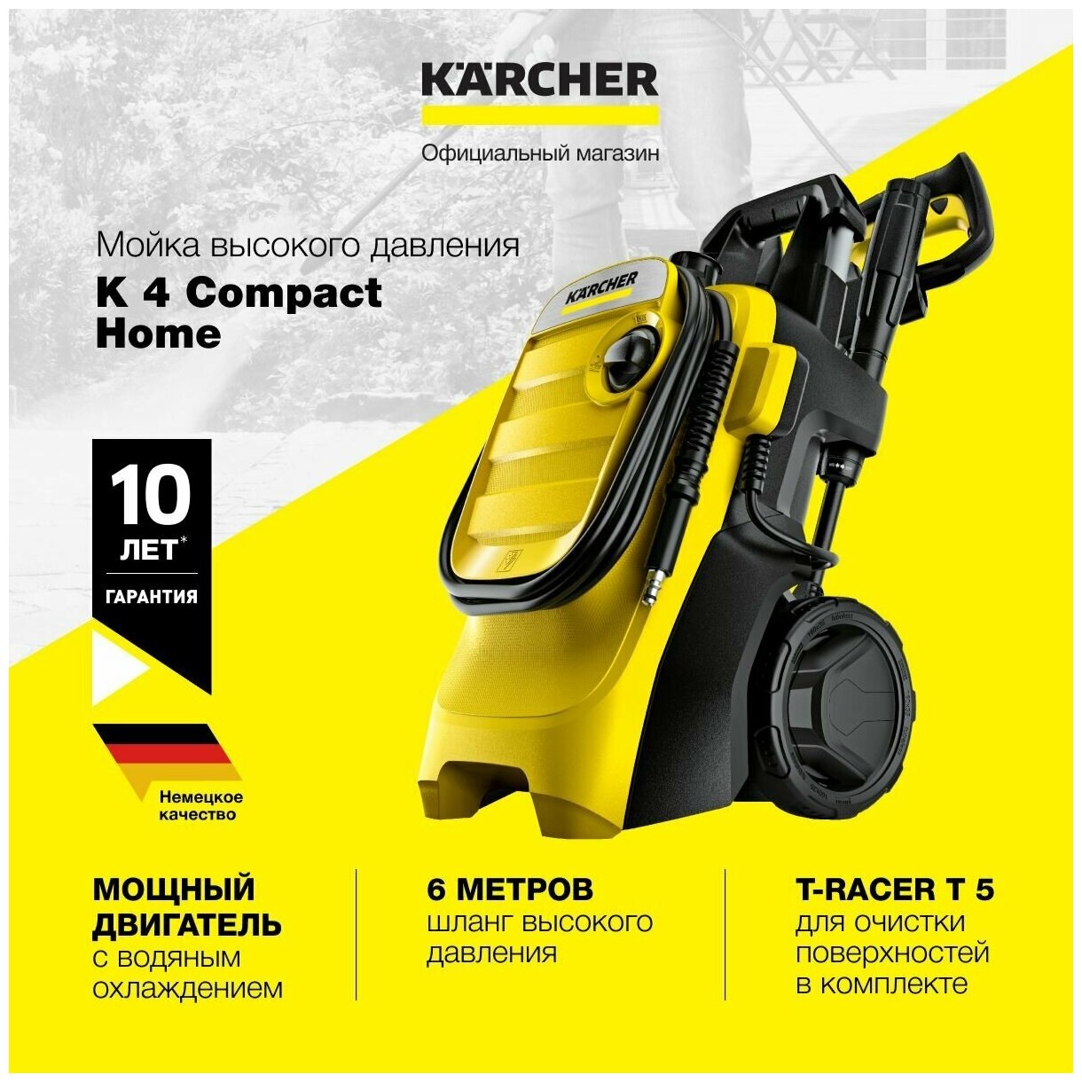 Мойка высокого давления Karcher K 4 Compact Home 1.637-503.0, с комплектом для уборки Home Kit, струйная трубка Vario Power, грязевая фреза, разъем Quick Connect, желтый/черный 30 790 ₽