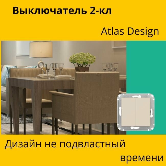 Выключатель Systeme Electric Atlas Design 2-клавишный, ATN001251 Песочный - 5 шт. информация: