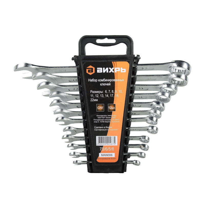 Набор ключей комбинированных 12 шт 6-22 Вихрь 73/6/5/8 информация:
