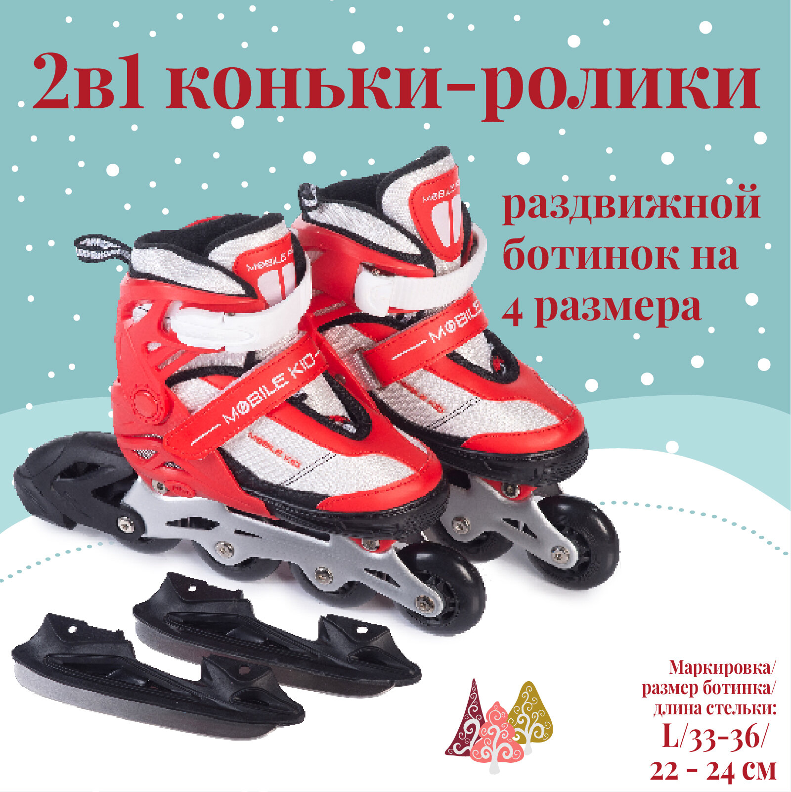 10 цен на Раздвижные коньки-ролики Mobile Kid UNI Skate (2 в 1), размер L (red White) .