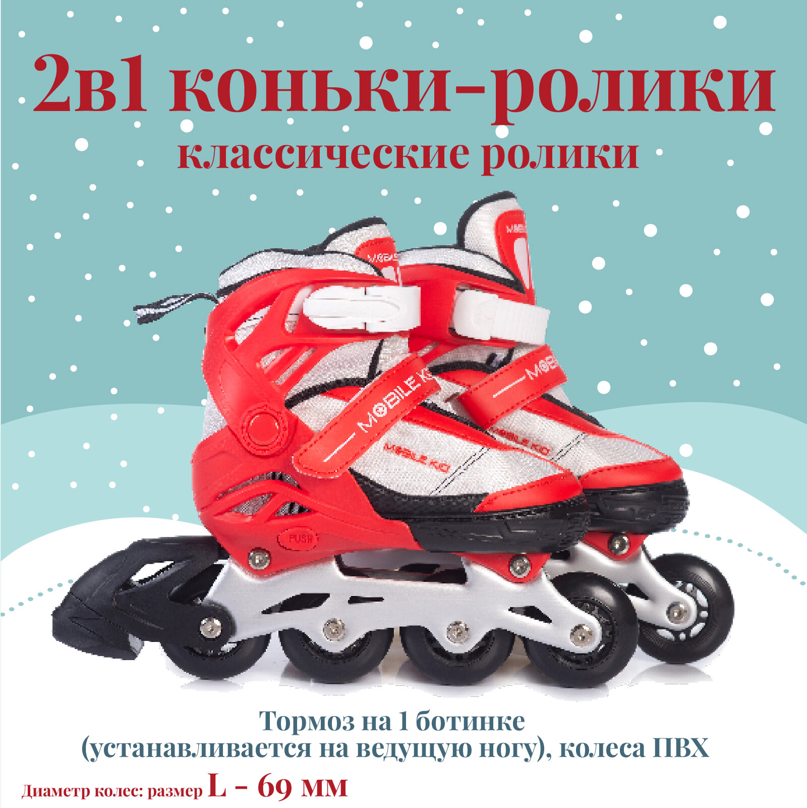 Раздвижные коньки-ролики Mobile Kid UNI Skate (2 в 1), размер L (red White) . информация: