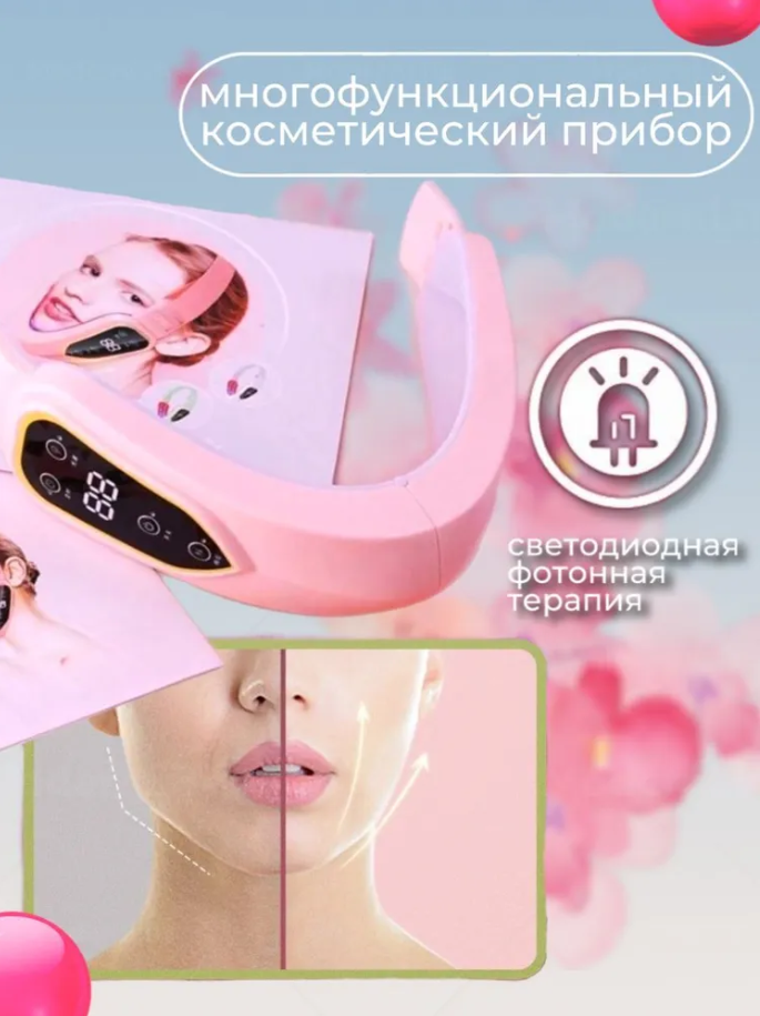 Отзывы на Светодиодный лифтинг массажер для лица, для подтяжки щек и лица, терапевтический бандаж для похудения, розовый