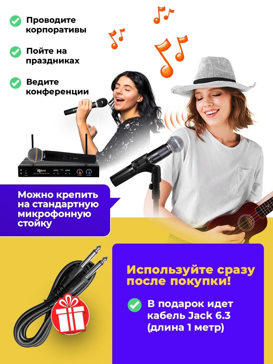 Микрофонная вокальная система беспроводная радио Ritmix, RWM-221 два микрофона, отдельные регуляторы, приём 60 метров информация: