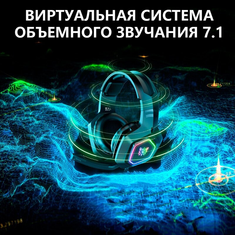Наушники проводные USB геймерские, полноразмерные большие с микрофоном, шумоподавлением, светящиеся Onikuma K10 7.1 Virtual Черные информация: