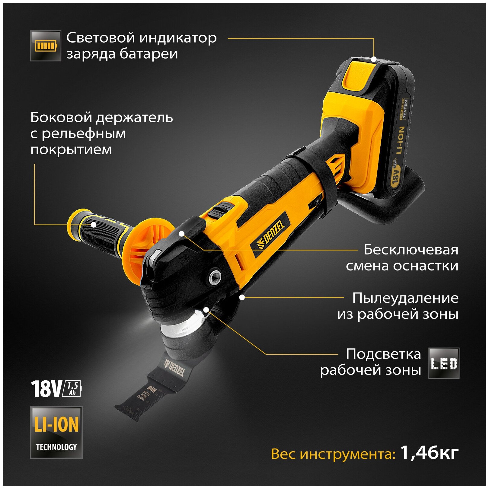 Аккумуляторный многофункциональный инструмент DENZEL MTL-IB-18-02, Li-Ion, 18 В, 1.5 Ач