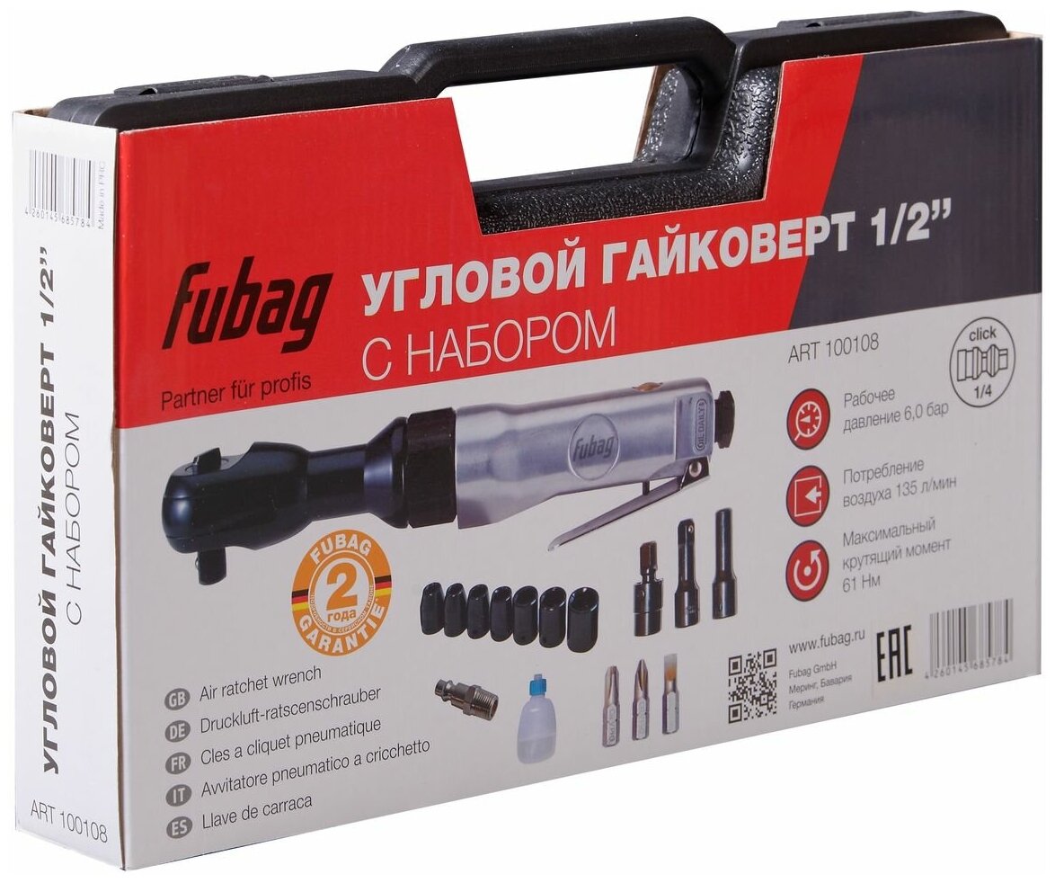 Пневмогайковерт угловой Fubag RW61 с набором 100108 (FUBAG)
