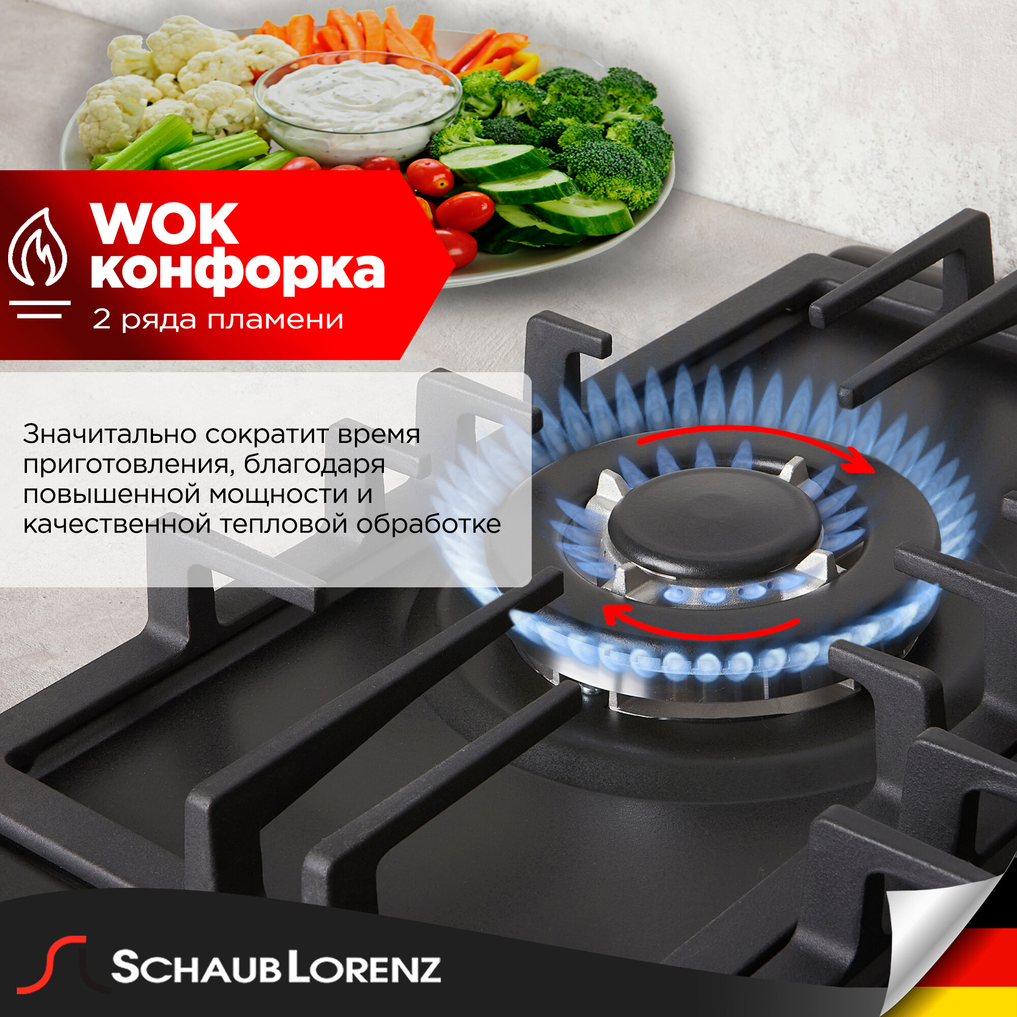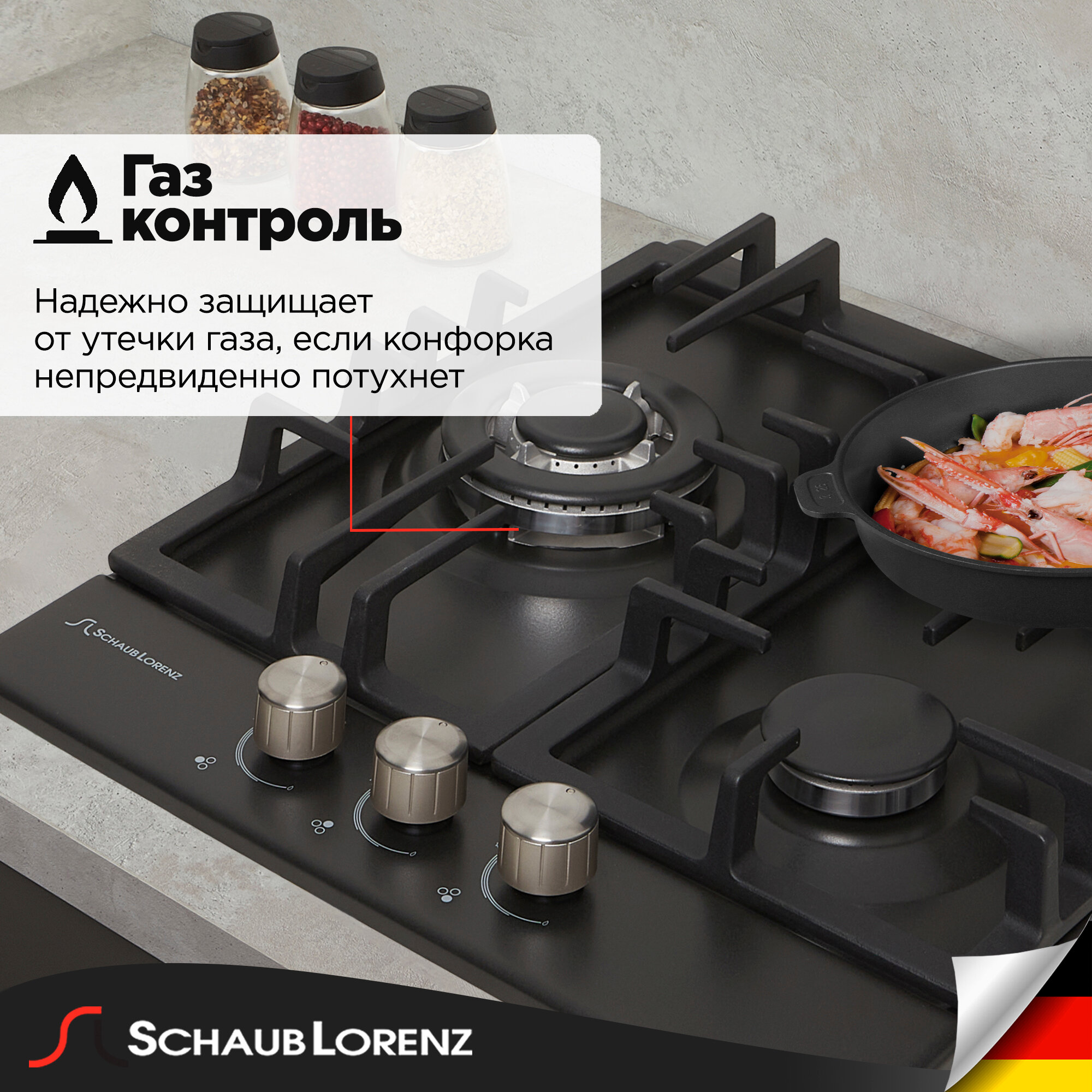 10 цен на Варочная панель газовая Schaub Lorenz SLK GS4511, 45 см, газ-контроль, электроподжиг, WOK