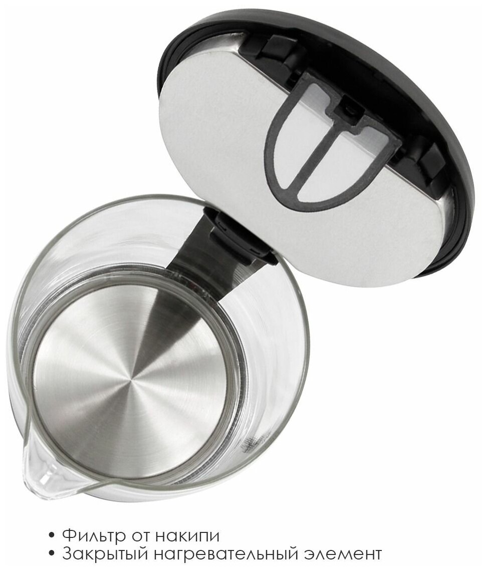 10 цен на Чайник электрический 1,8л стеклянный, внутренняя подсветка (черный) ATH-2475 (black) .