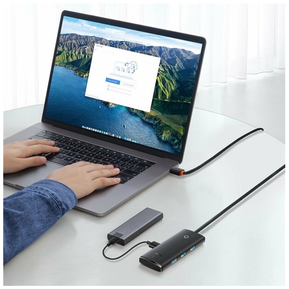10 цен на Хаб Baseus Lite Series 4-Port USB-A HUB Adapter (USB-A to USB 3.0x4 ) 1 м Black (WKQX030101)