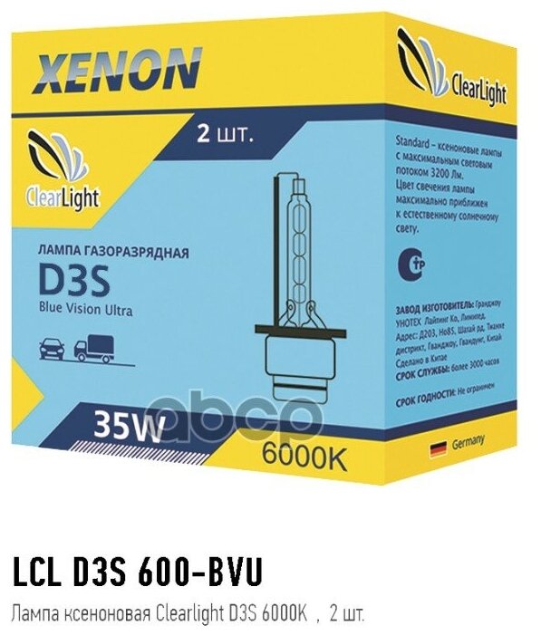 Комплект ксеноновых ламп Clearlight D3S, 6000 K, 2 шт. LDL D3S 160-0LL информация: