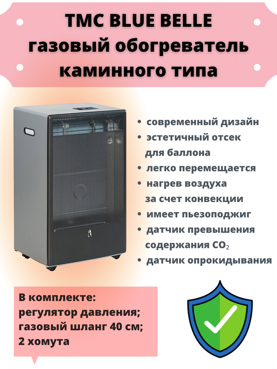 Газовый обогреватель каминного типа TMC Blue Belle Grey информация: