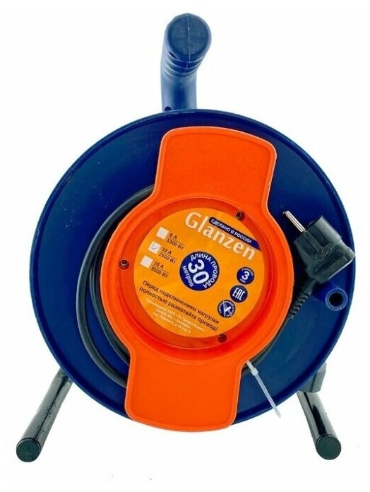 Силовой удлинитель на катушке Glanzen ПВС 2х1,5 арт. EC-30-010 00-00006538 информация: