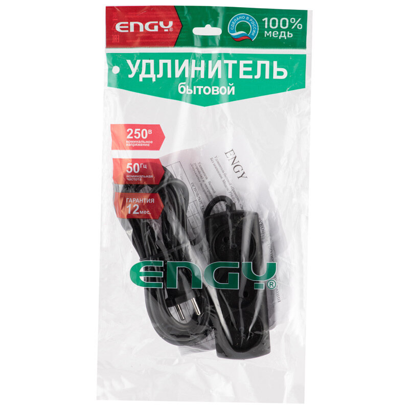 Удлинитель ENGY 186744, Премиум 5метров, 3розеток (ПВС 2*0,75) черный
