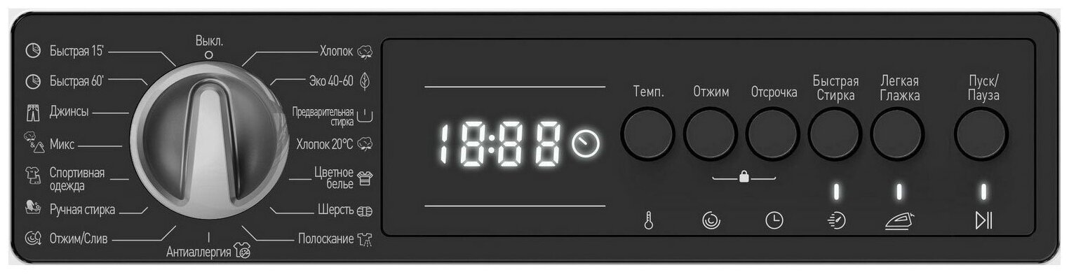 | Дополнительные функции | выбор скорости отжима / выбор температуры стирки / интеллектуальное управление стиркой / контроль баланса / контроль за уровнем пены / отложенный старт / Антиаллергия / Блокировка от детей / быстрая стирка / Легкая глажка / предварительная стирка |