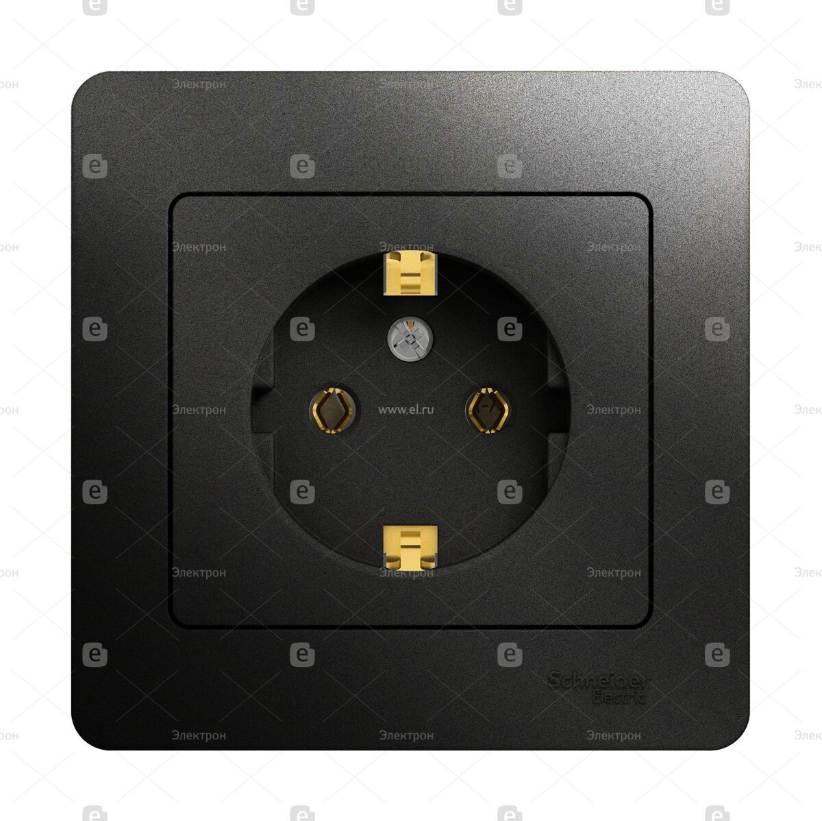 Розетка с заземлением, (в сборе), Антрацит, Schneider Electric Glossa (комплект 3шт)