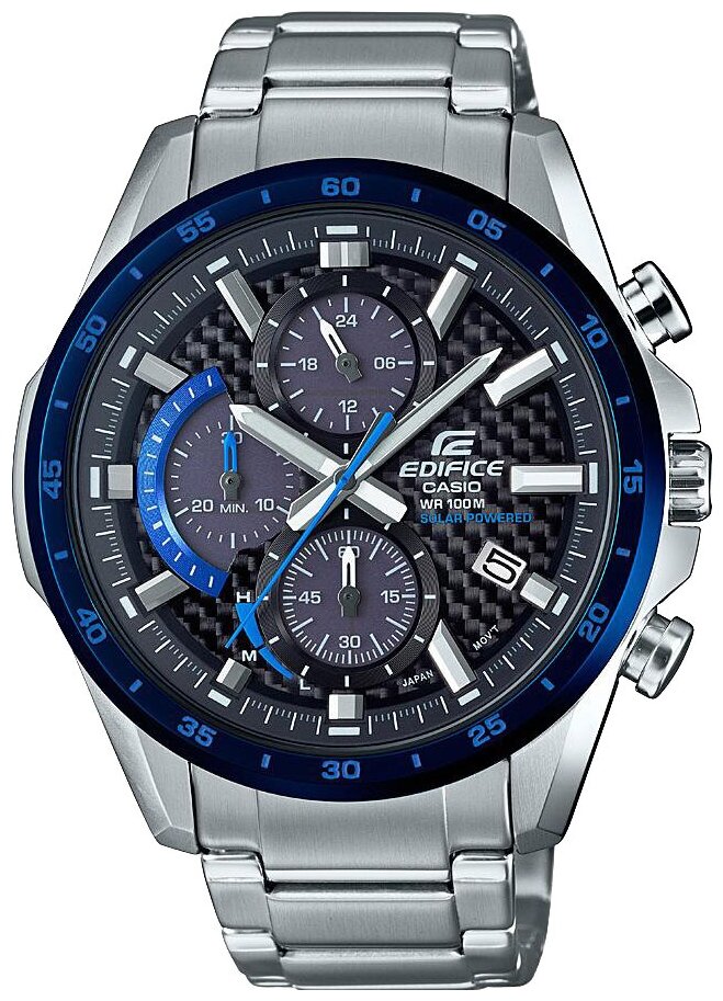 Японские кварцевые часы с солнечной подзарядкой Casio Edifice EQS-900DB-2A на стальном браслете, с водозащитой 10 бар и международной гарантией от производителя