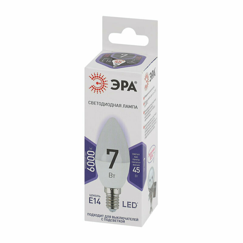 Отзывы на Лампа светодиодная B35-7W-860-E14 свеча 560лм, ЭРА Б0031400 (1 шт.)