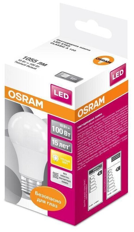 Отзывы на Osram Светодиодная лампа LED STAR A Стандарт 10 Вт E27 1055 Лм 2700 К Теплый белый свет 4052899971578