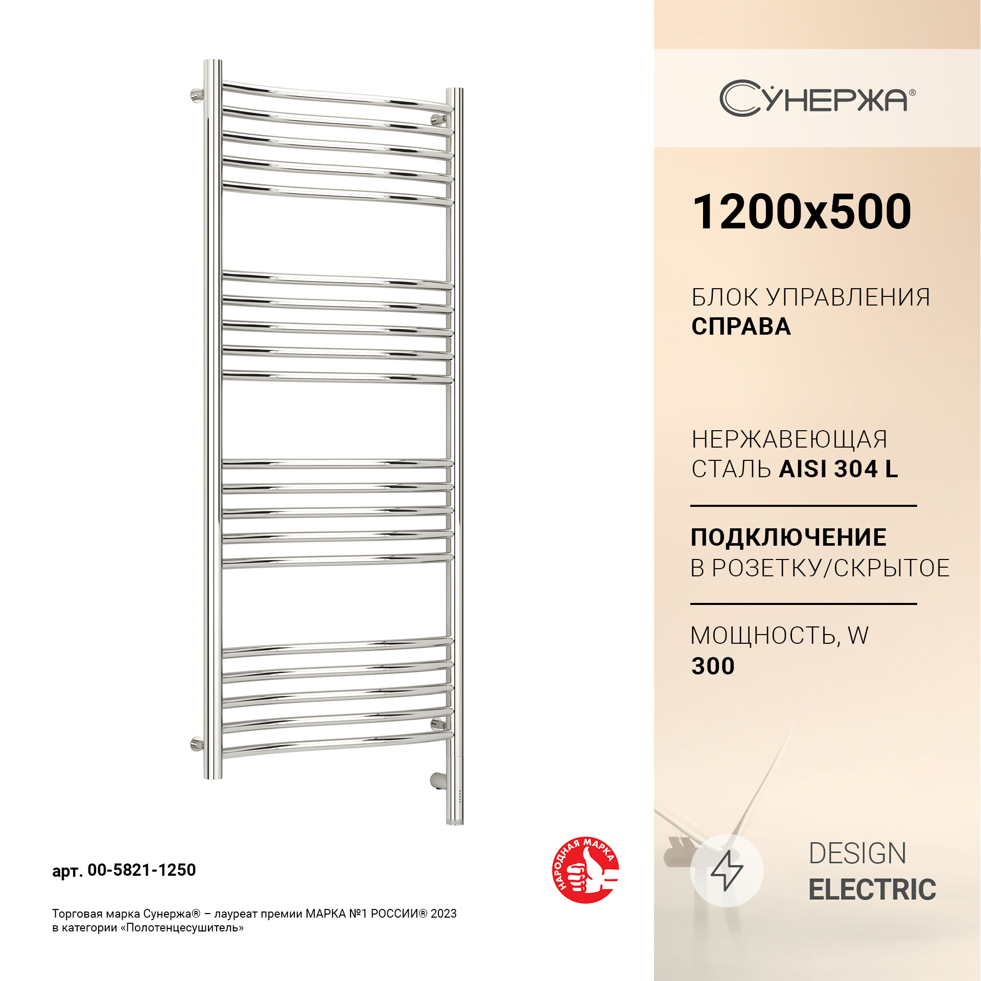 Полотенцесушитель электрический Сунержа Флюид 3.0, 1200х500, МЭМ правый, сталь полированная 00-5821-1250 38 000 ₽