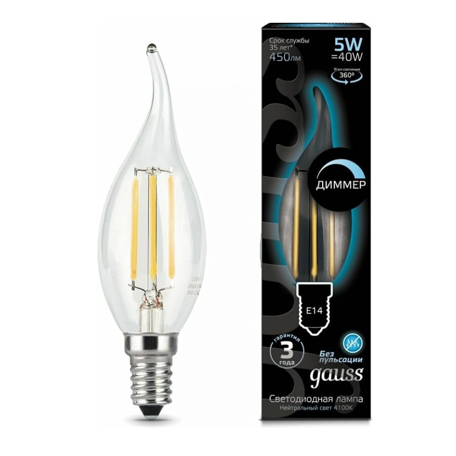 Отзывы на Лампа Gauss LED Свеча на ветру Filament E14 5W 4100K 104801205