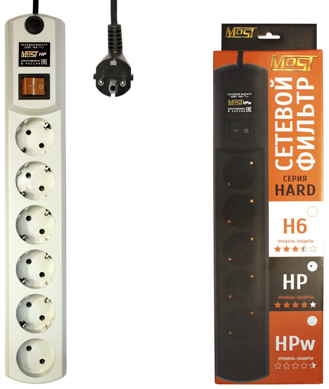 10 цен на Сетевой фильтр Most HP 5м (6 роз.) белый, шт