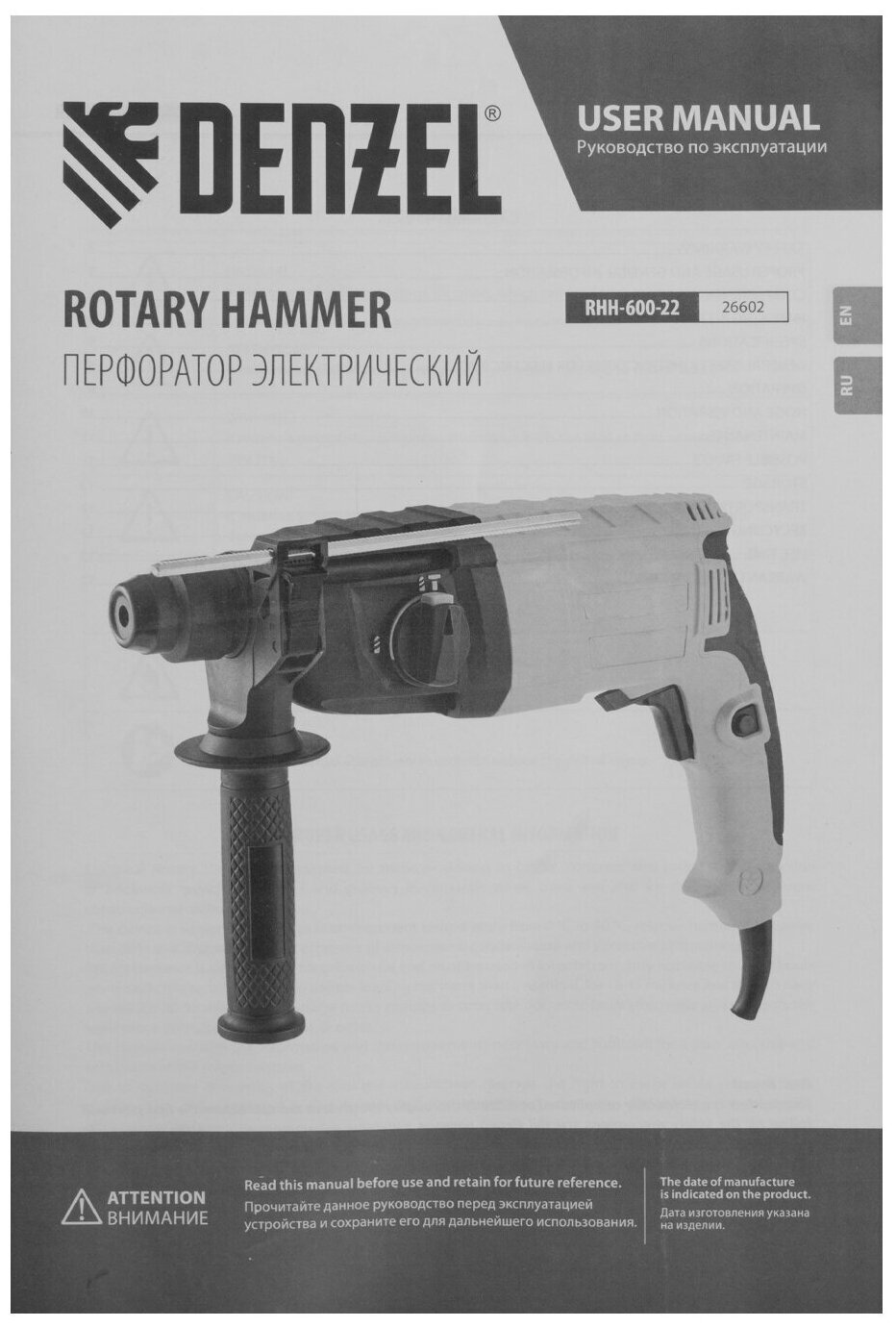 Отзывы на Перфоратор электрический RHH-600-22, SDS-plus, 600 Вт, 2,5 Дж, 2 реж.// Denzel, 26602