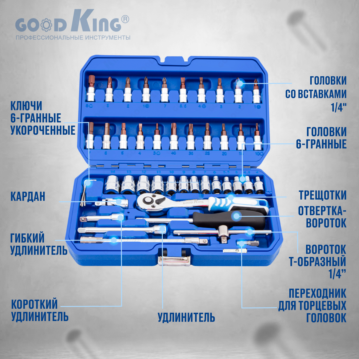 Для слесарных, ремонтных и точных работ GOODKING C-10046, 46 предм., синий, 1 уп. 1 790 ₽