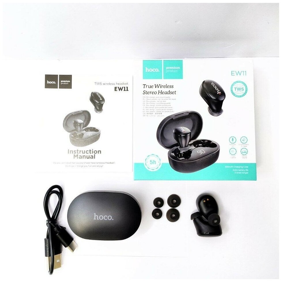 Наушники EW11 HOCO, беспроводные наушники капельки вакуумные, черные