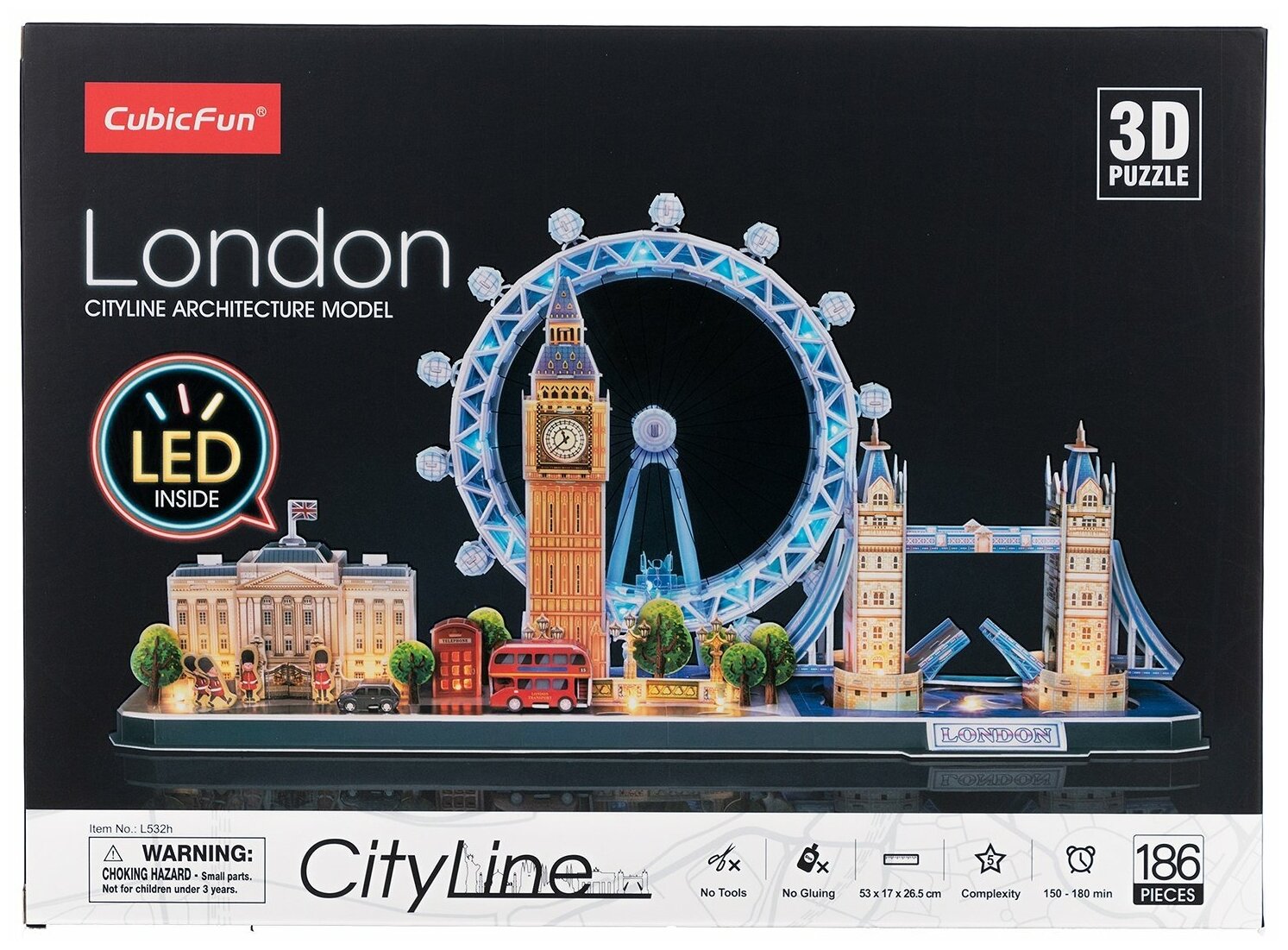 Пазл 3D Cubicfun Лондон, 186 деталей, с LED-подсветкой информация: