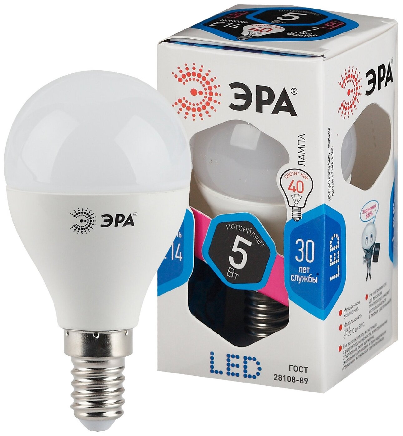 Лампа светодиодная P45-5w-840-E14 шар 400лм ЭРА Б0028487 информация: