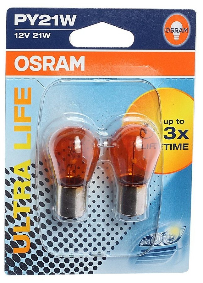 OSRAM 7507ULT-02B Лампа 12V PY21W 21W BAU15s OSRAM ULTRA LIFE 2 шт. блистер 7507ULT-02B