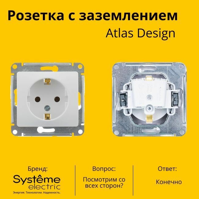 Отзывы на Розетка электрическая Systeme Electric Atlas Design с заземлением, 16А Белая ATN000143 - 6 шт.