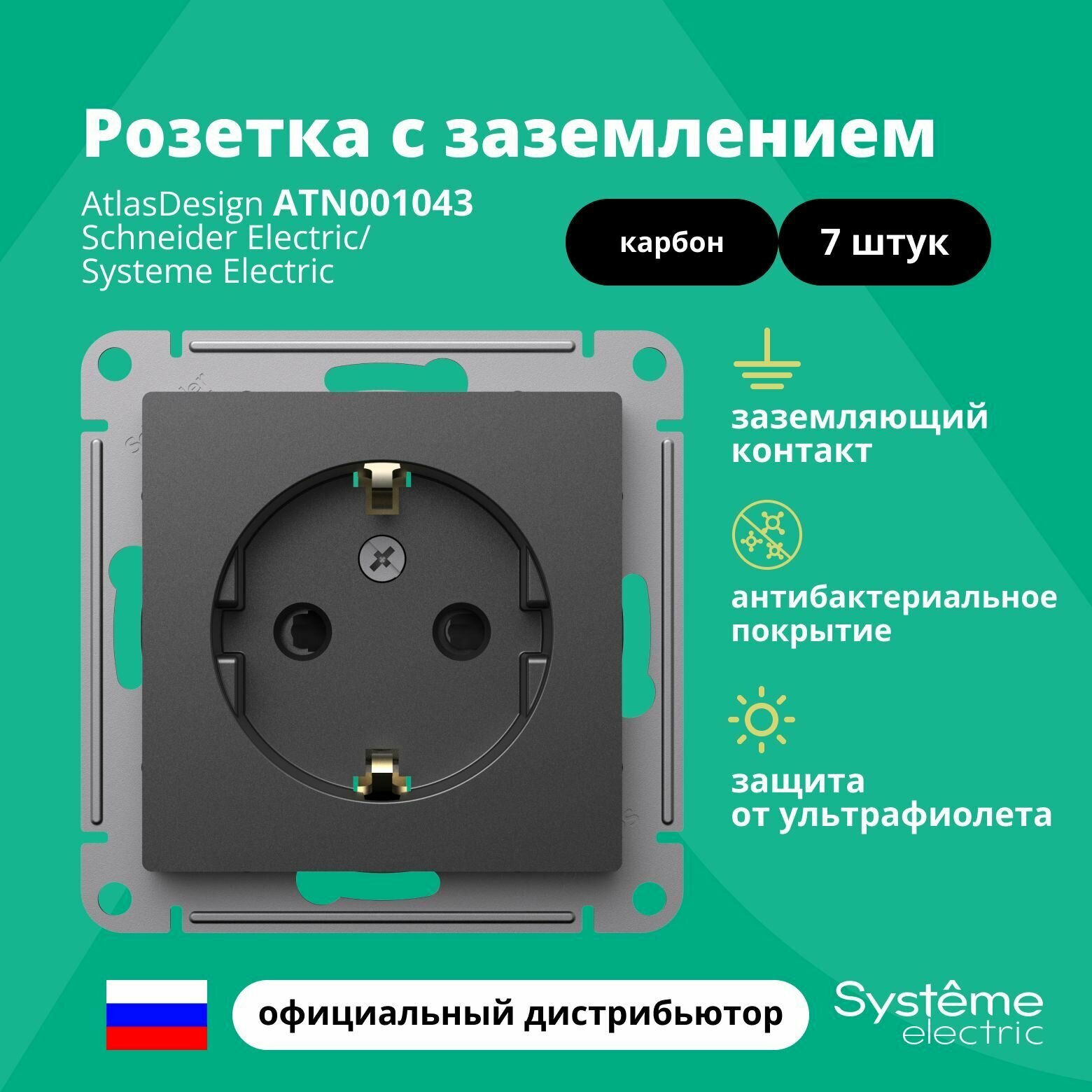 Розетка с заземлением Systeme Electric AtlasDesign 16А, карбон ATN001043/7, 7 шт. информация:
