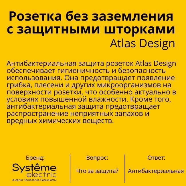Отзывы на Розетка электрическая Systeme Electric Atlas Design без заземления с защитными шторками, 16А Бежевый ATN000249 - 5 шт.