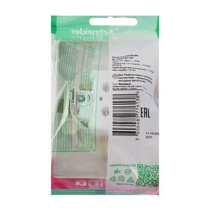 4шт. - Розетка BLАNCА двойная, скрытой установки, IP44, с заземлением, со шторками, с крышками, 16А, 250В, бежевый / Systeme Electric; арт. BLNRS441127; оригинал / - комплект 4шт 2 236 ₽