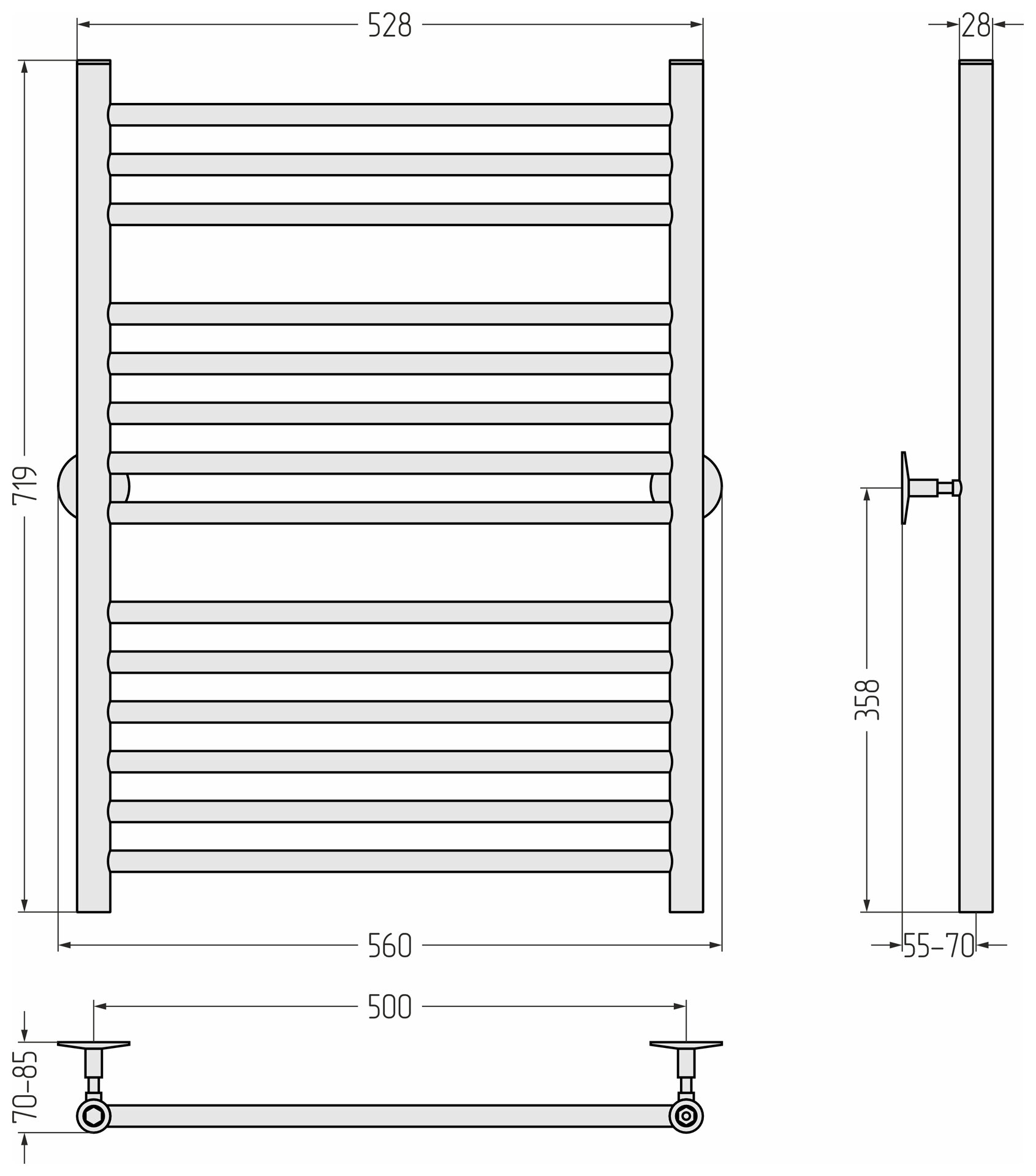 Полотенцесушитель ZOX ЛЦ 80х50 1' 7 перекл ЛОТОС-3 универс подкл (крепеж, без монт комп), нижнее подключение