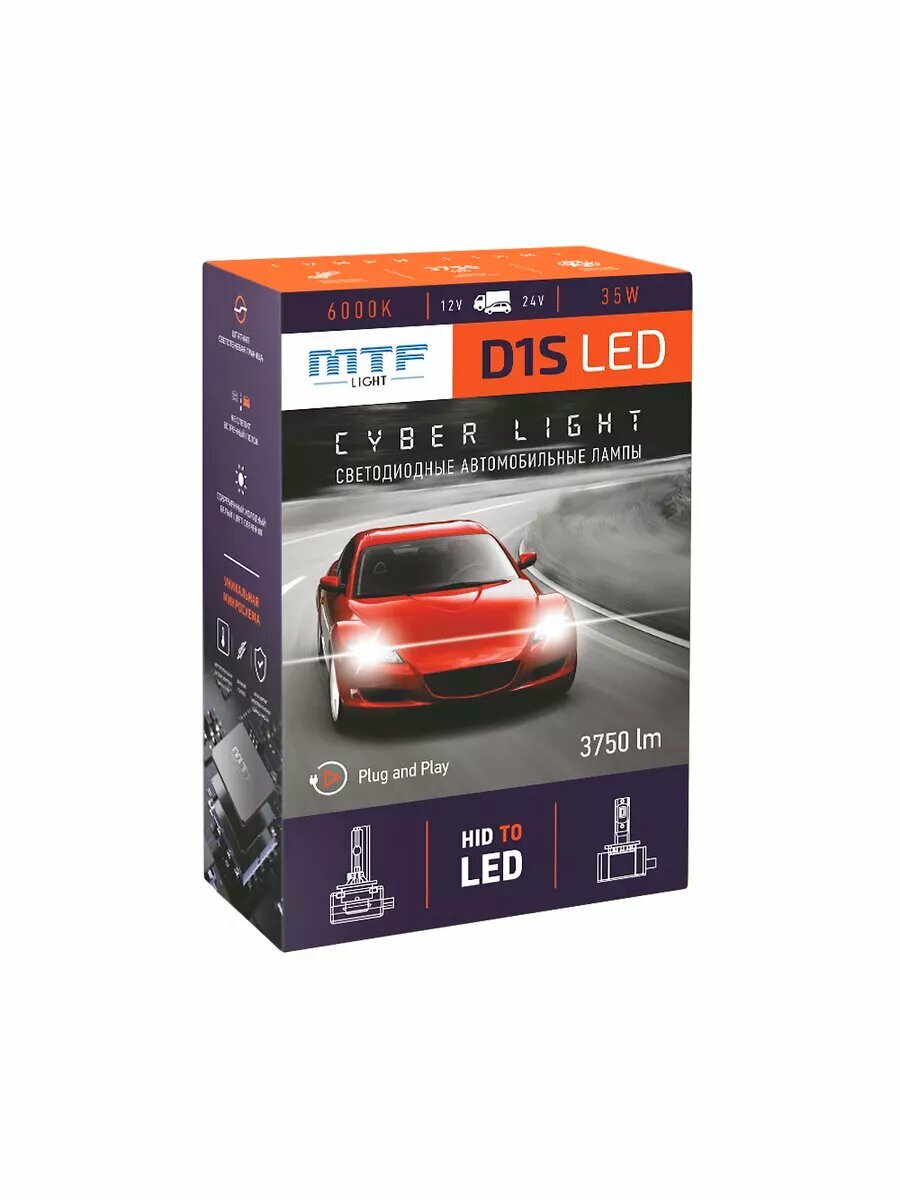 Светодиодные лампы MTF Light Cyber Light Pro H7/H18 6000K 12V, 65W, 2шт, CP07K6