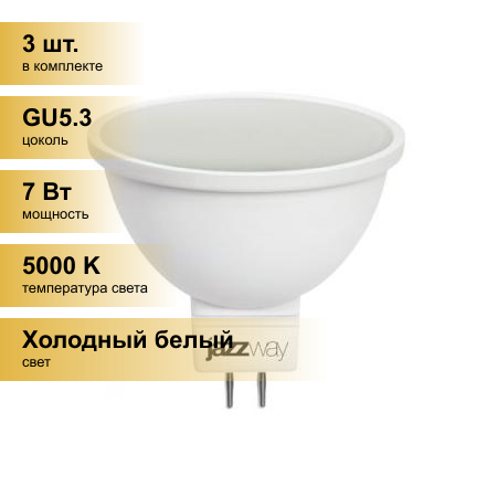 (3 шт.) Светодиодная лампочка Jazzway MR16 GU5.3 7W(520lm) 5000K 4K 50x45 PLED-SP .1033536 информация: