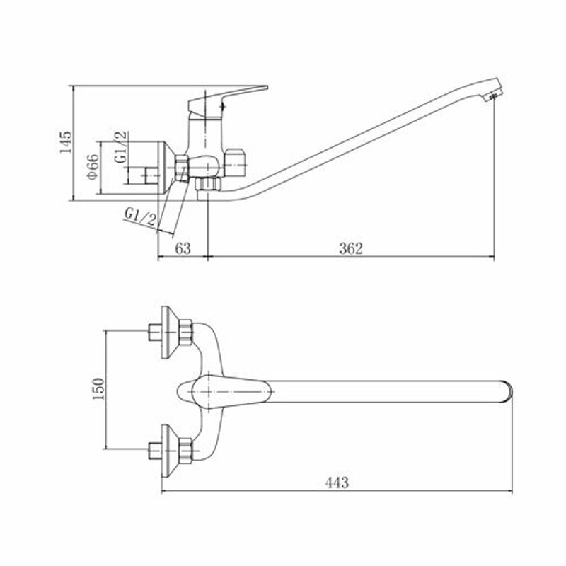 Смеситель на раковину настенный Эверест B46-350 с круглым поворотным изливом, кран-буксы 1/2", хром