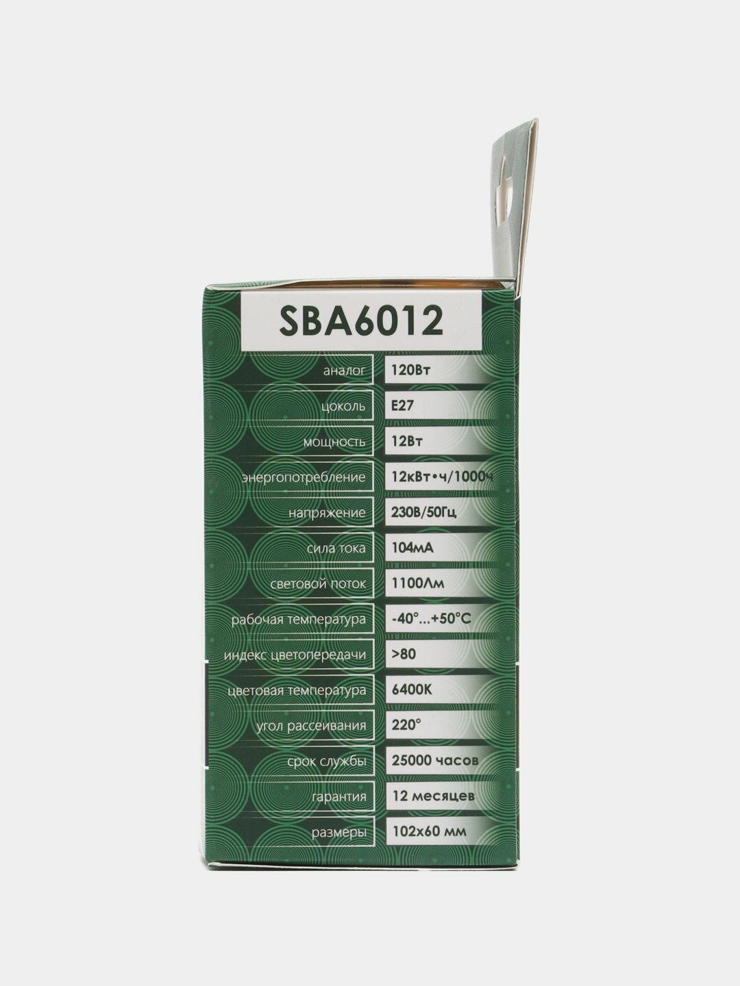 Лампа светодиодная SAFFIT SBA6012, A60, E27, 12 Вт, 230 В, 6400 К, 1100 Лм, 220°, 113х60 мм информация: