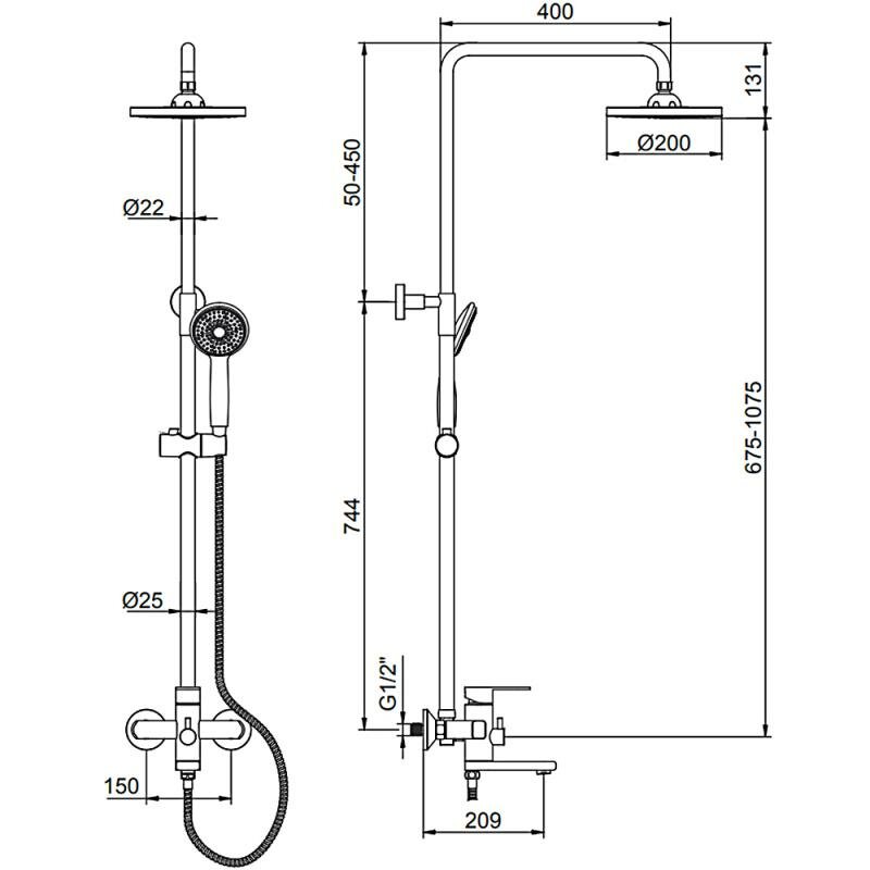| Дополнительная информация | высота стойки для душа: 1200 мм; диаметр верхнего душа: 200 мм |