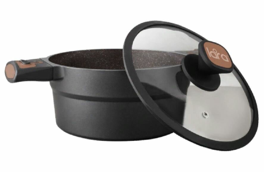 LR02-204 Кастрюля LARA серия Rio CHOCO 24х11см, 4.2л, мрамор, капсулированное, индукц. дно, крышка