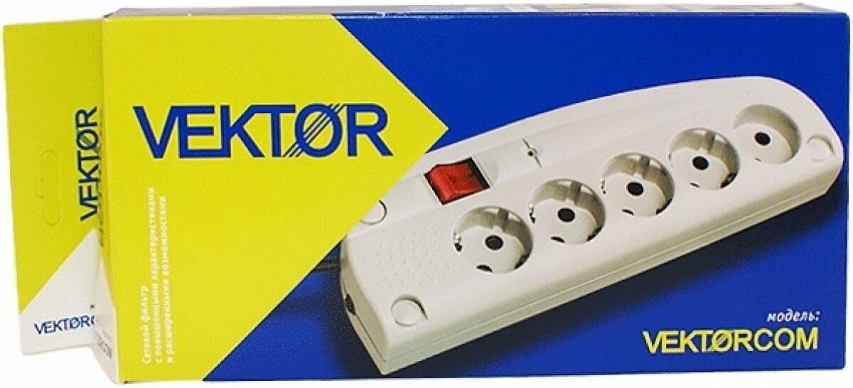 Сетевой фильтр VEKTOR Com, 5 розеток, с/з, 10А / 2200 Вт светло-серый 5 м