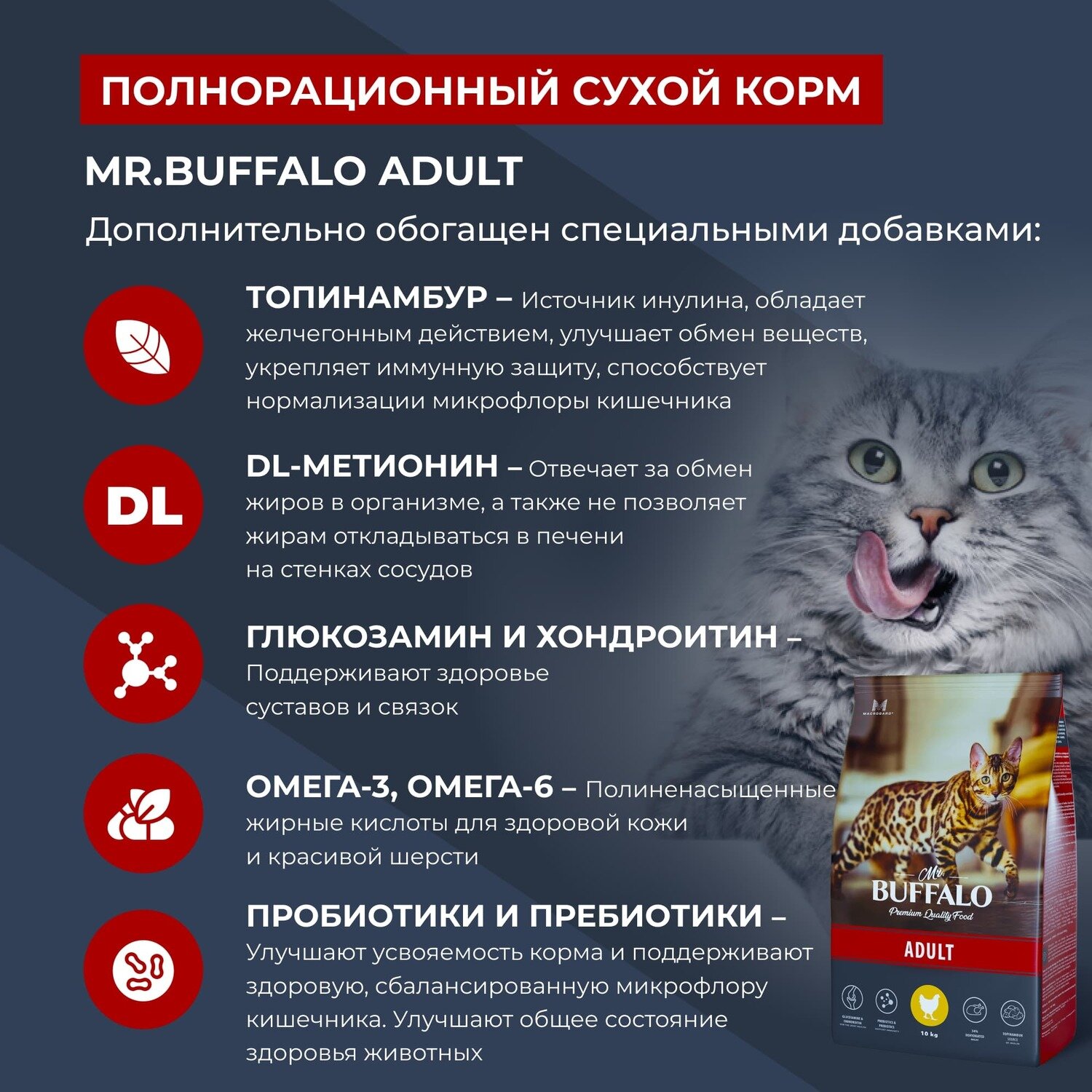 Сухой корм Mr.Buffalo ADULT для кошек, курица, 10 кг 5 557 ₽