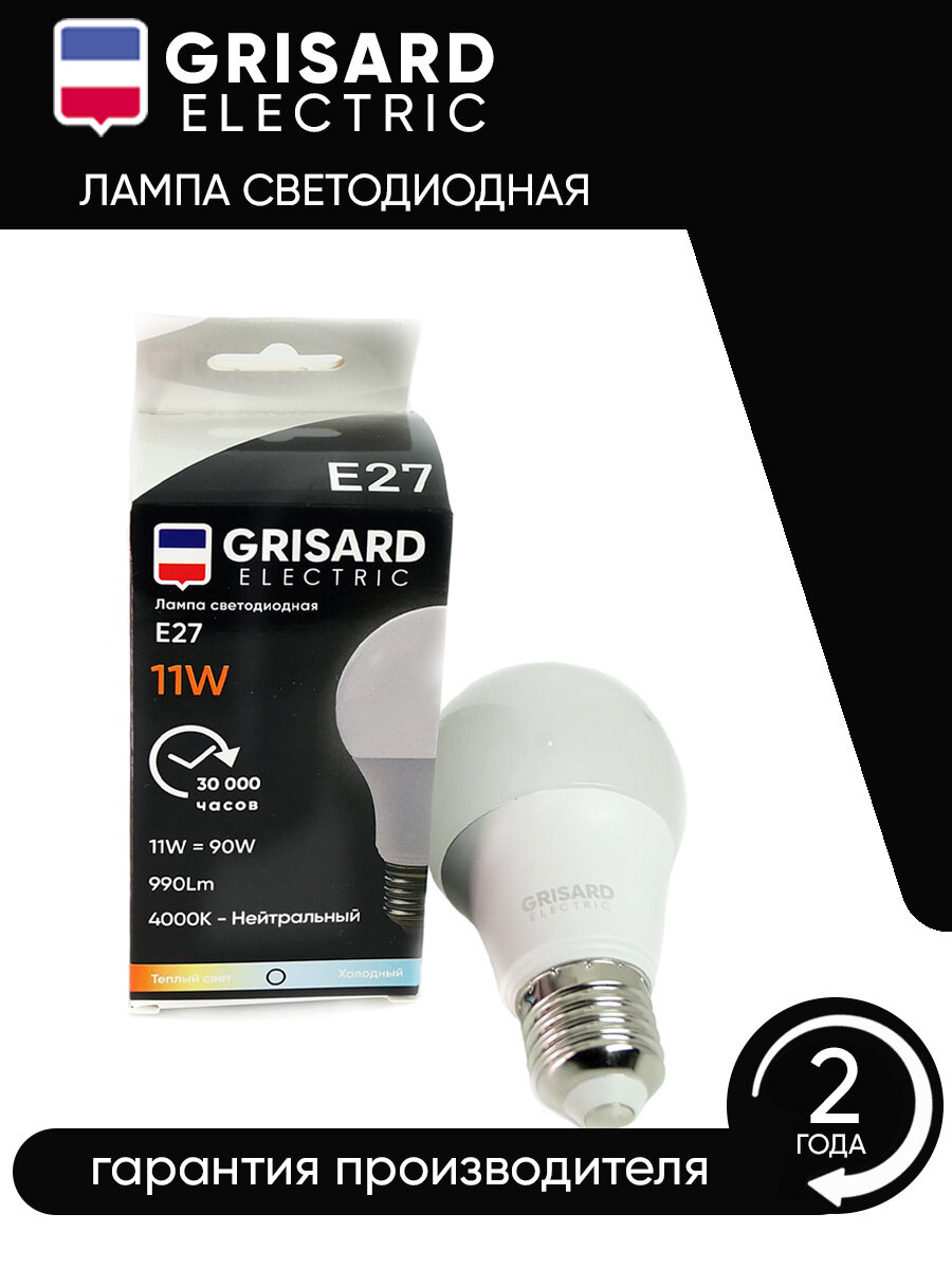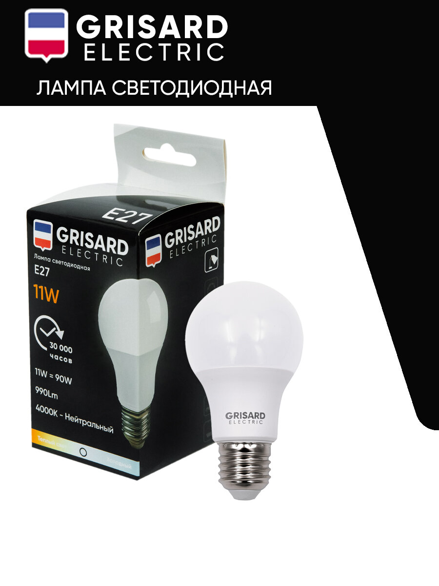 Лампа светодиодная GRISARD ELECTRIC шар A60 Е27 11Вт 4000К 220В 1шт информация:
