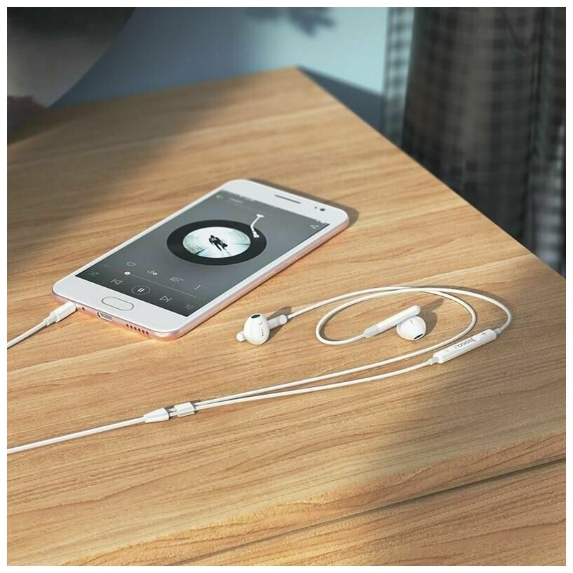 Наушники внутриканальные HOCO M93, силикон, микрофон, кнопка ответа, регулятор громкости, кабель Jack 3.5mm, 1.2м, цвет: белый