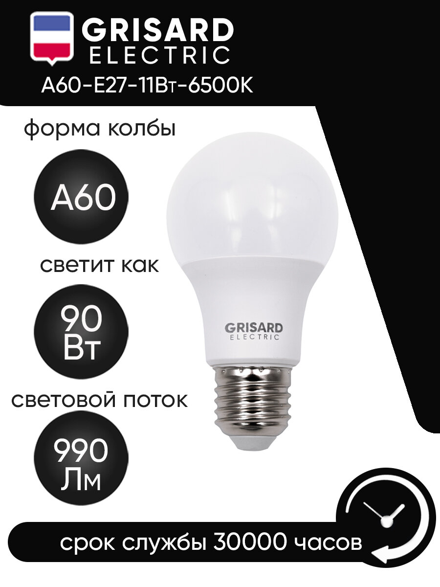 Отзывы на Лампа светодиодная GRISARD ELECTRIC шар A60 Е27 11Вт 6500К 220В 6шт