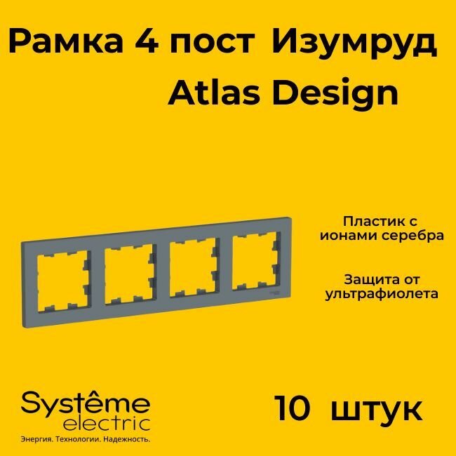 10 цен на Рамка четырехместная Systeme Electric Atlas Design изумруд ATN000804 - 10 шт.