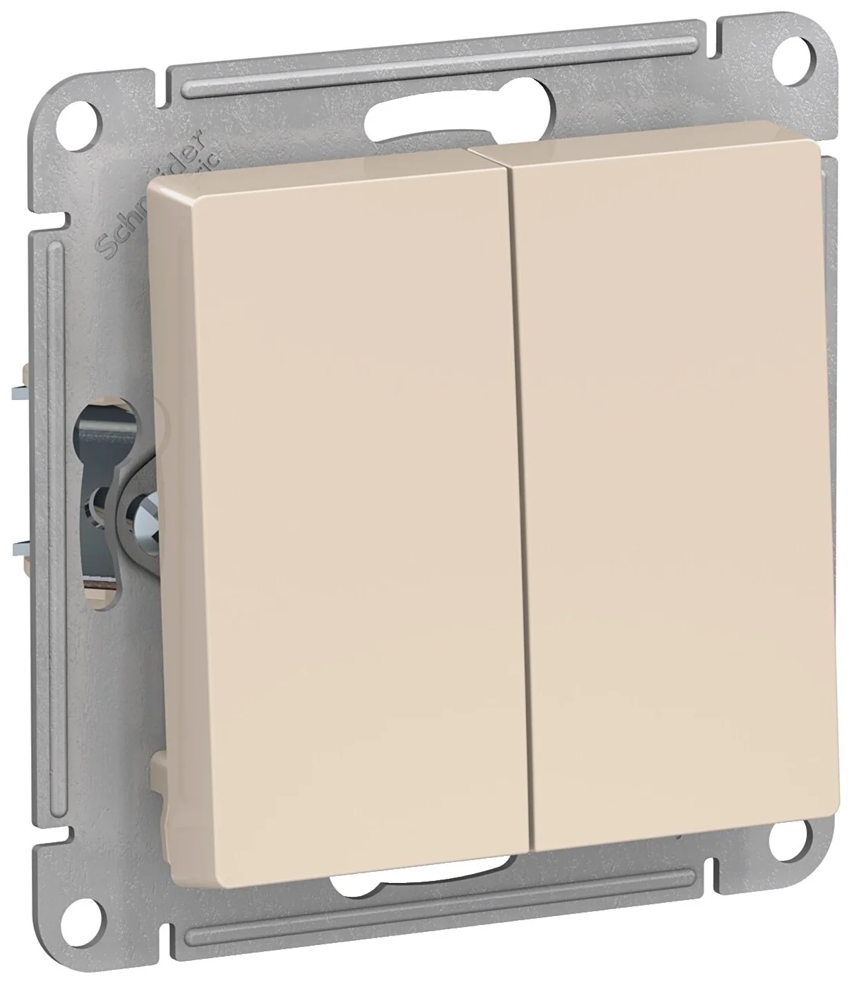 Переключатель двухклавишный встраиваемый Schneider Electric Atlasdesign, 10 A, шампань